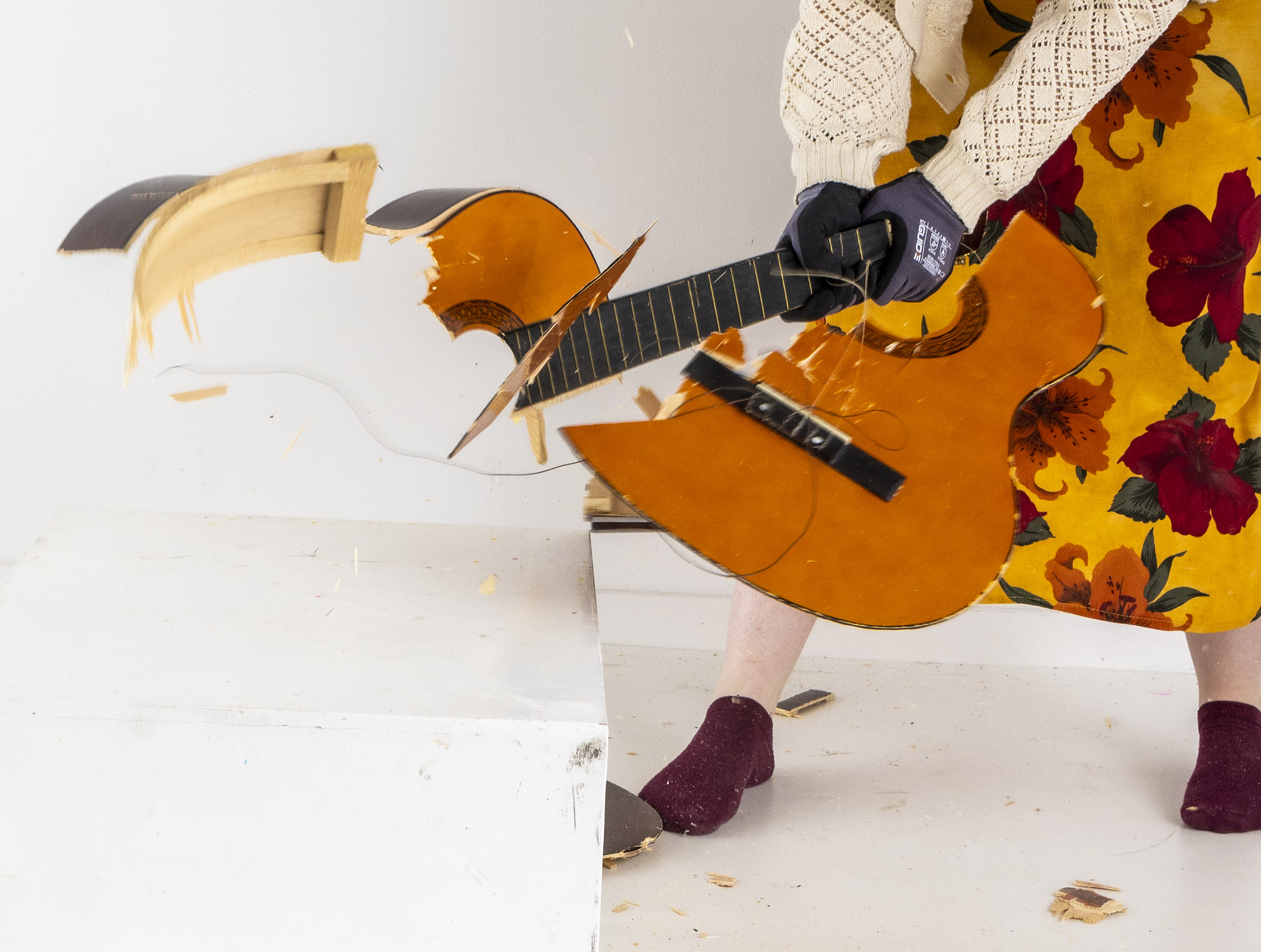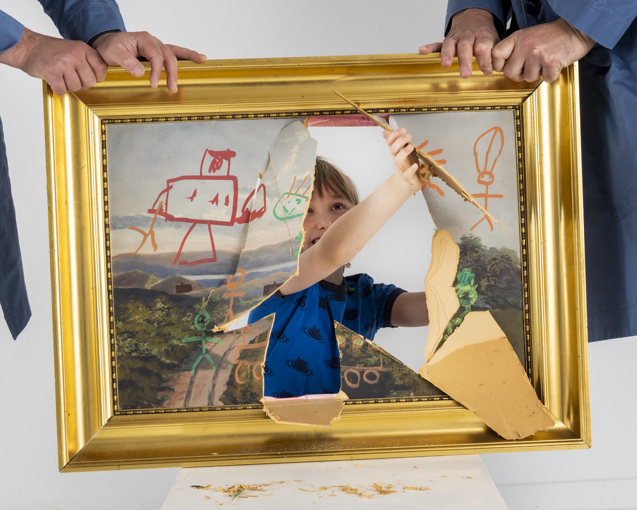 Sammen med publikum drukner vi gipsbuster, knaser bolcher, smadrer guitarer og kravler gennem lærreder i et farverigt kaos af fantasi og forvandling. Forestillingen genskaber 18 berømte ødelæggelser fra kunsthistorien – live – i en 45 minutters tour de force for hele familien.