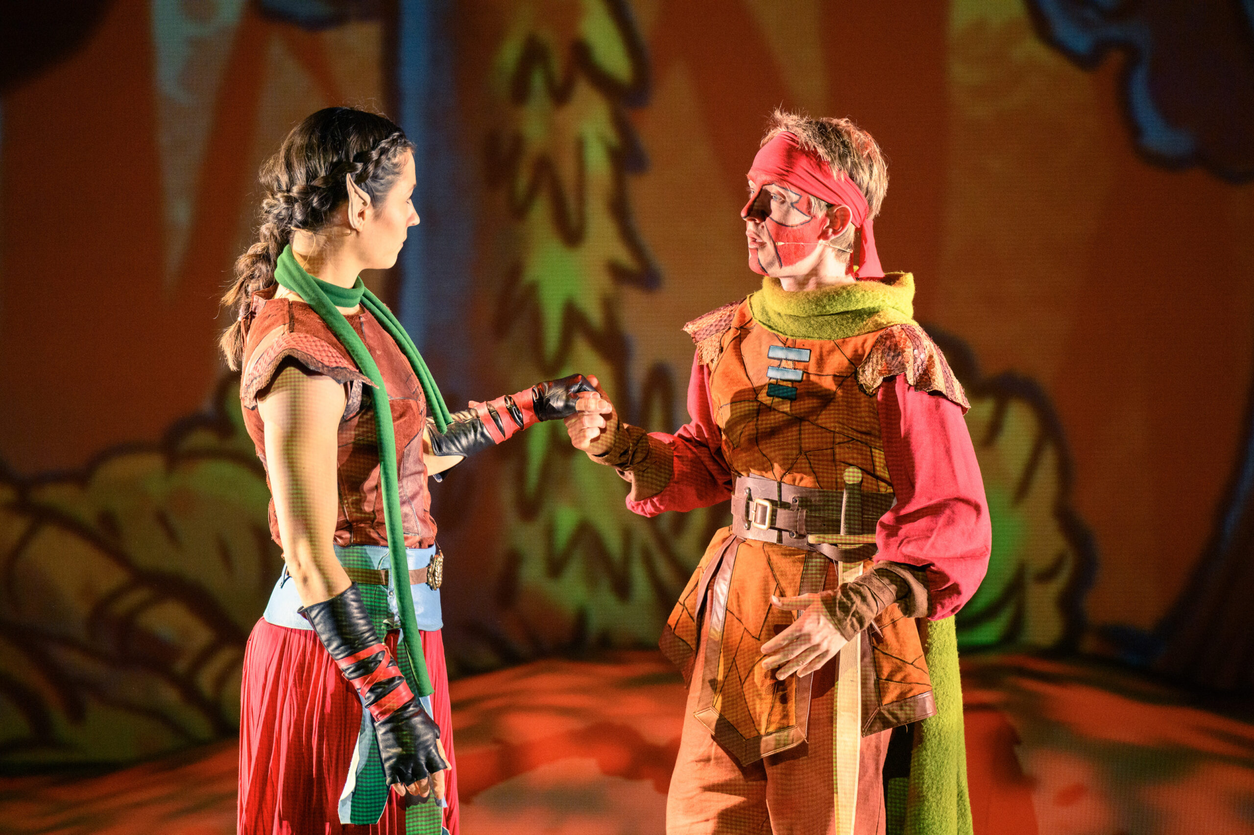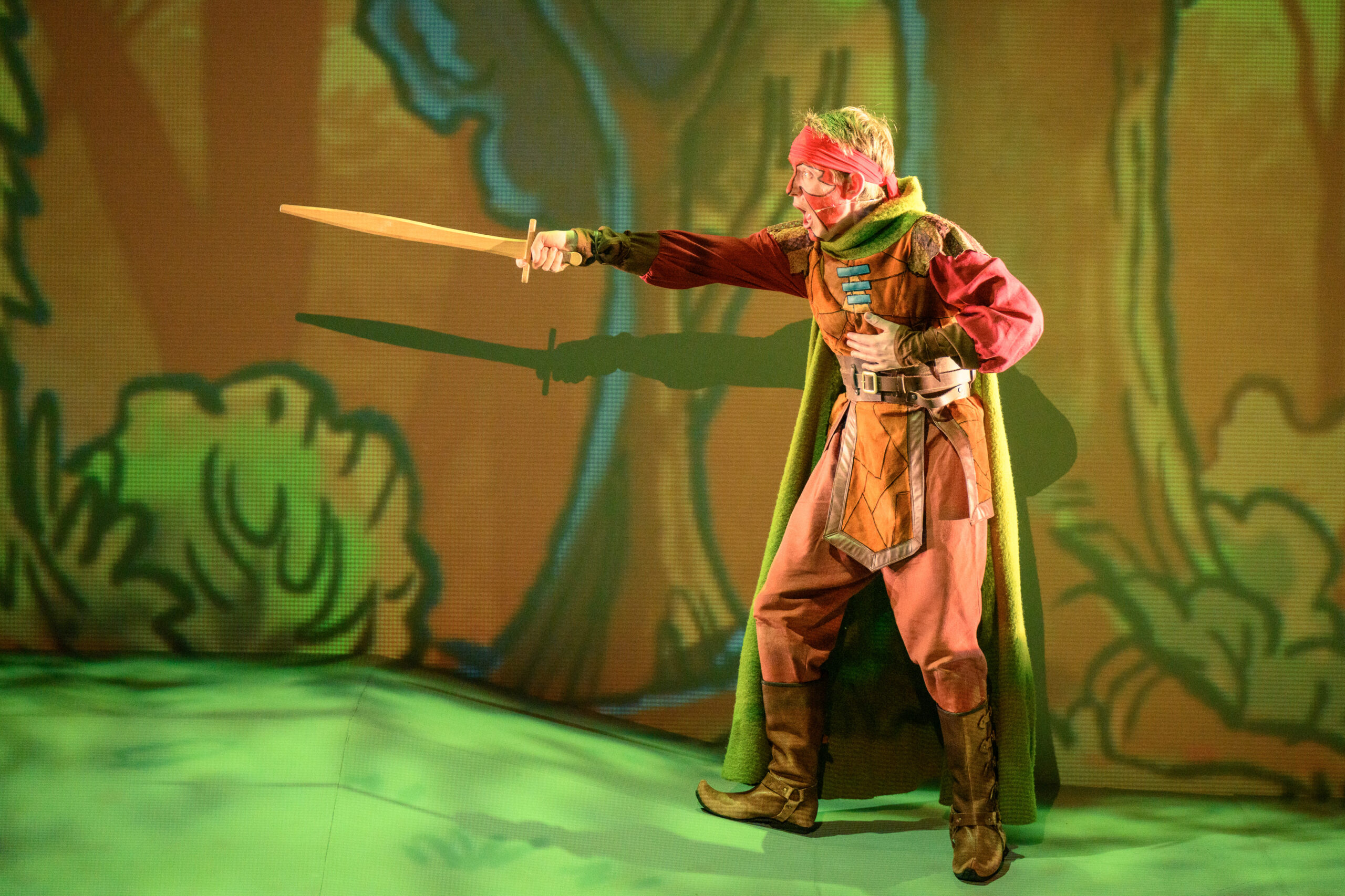 Med en imponerende blanding af skuespil, sang og visuelle projektioner folder fortællingen sig ud i et sansebombardement af farver, lyd og action.