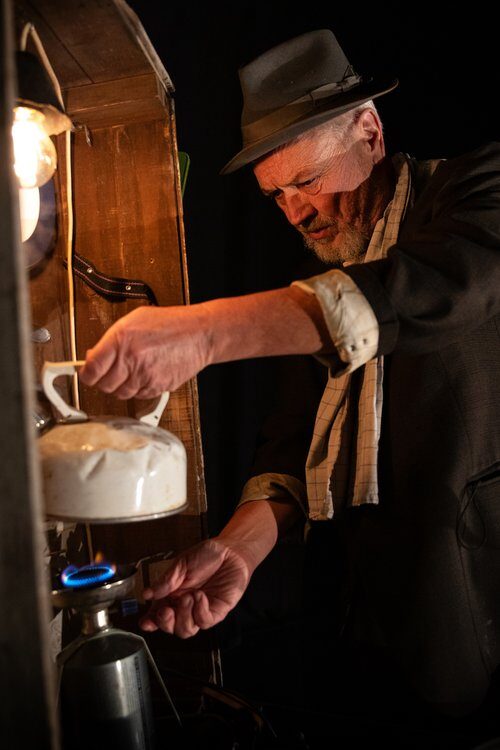 En biting starter i stilhed, men udvikler sig – bid for bid – til en levende, rørende og humoristisk fortælling. Det, der først ligner en stille monolog, forvandles til en sanselig dialog mellem skuespilleren og børnene, som bliver en del af fortællingen.
